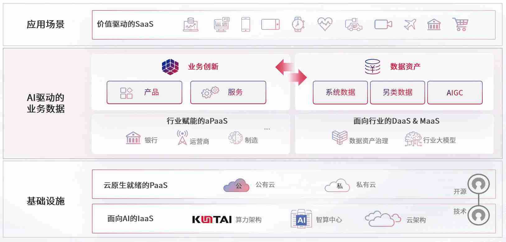 数字时代,,围绕企业数字化转型的关键要素,,,尊龙数码开创性的提出数云融合战略和技术体系框架,,,,着力在云原生、、、数字原生、、、、AI原生和信创产业上架构产品和服务能力,,为处在不同数字化转型阶段的快消零售、、、汽车、、金融、、、医疗、、、、政企、、、、教育、、、运营商等行业客户提供泛在的敏捷IT能力和融合的数据驱动能力,,,,构建跨界融合创新的数字业务场景和新业务模式,,助力企业级客户建立面向未来的核心能力和竞争优势,,,全面推动社会的数字化、、智能化转型升级。。。。